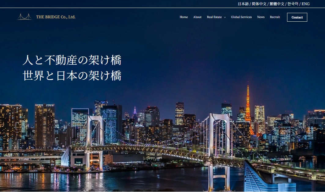 THE BRIDGE(読み:ザ・ブリッジ)株式会社は、「人×不動産×グローバル」をテーマに、不動産や地域のその唯一無二の個性を見い出し連携させることによって、より幸せで豊かな人生、街、都市、そして世界を実現することを目指しています。採用と組織づくりにおいては、多言語及び多文化への理解を持ったプロフェッショナル集団を組成し、不動産の売買・賃貸における仲介業務及び日本企業の海外進出や海外から日本への投資におけるコンサルティング業務を中心に、高品質なサービスを提供しています。
