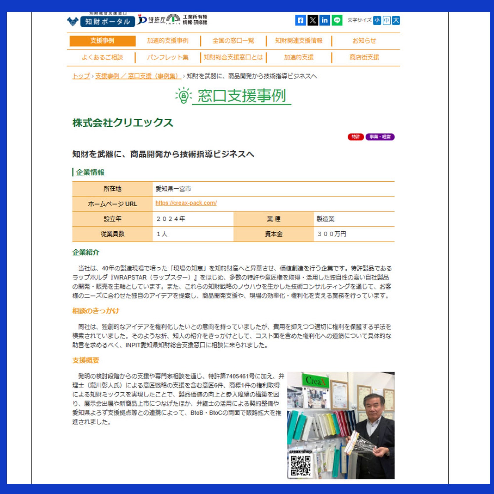 地財総合支援窓口(INPIT)のポータルサイトにて、2026年2月に支援事例として下記内容で掲載頂きました。