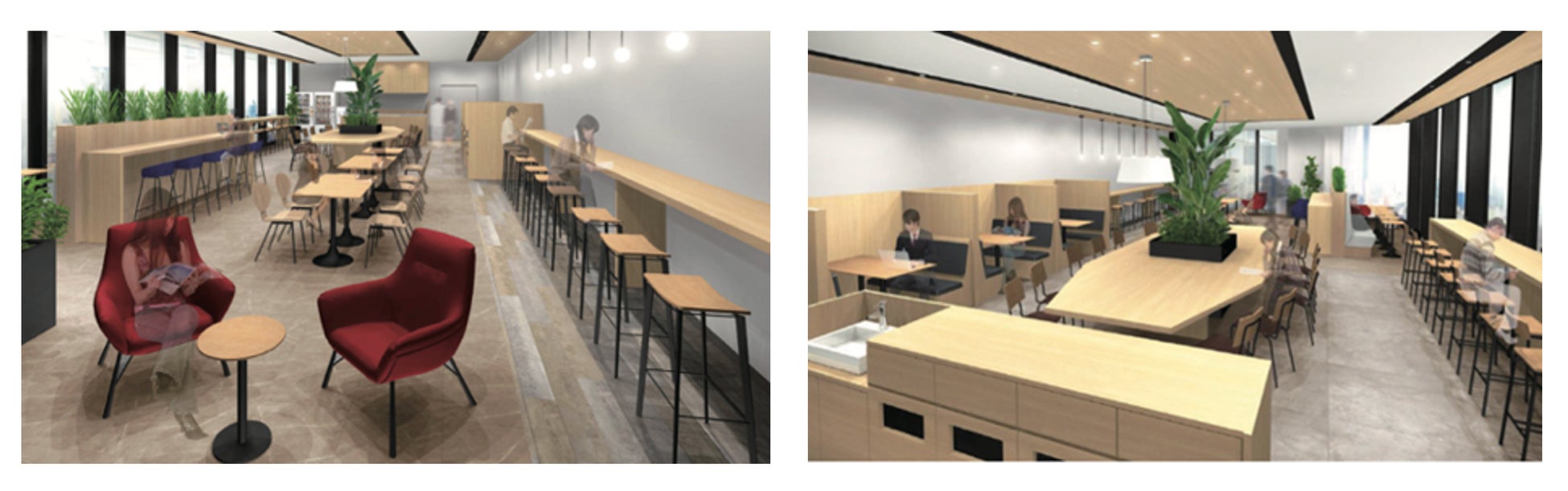 オフィス以外の場所でランチを食べたり、休憩、リフレッシュすることが可能なスペース。