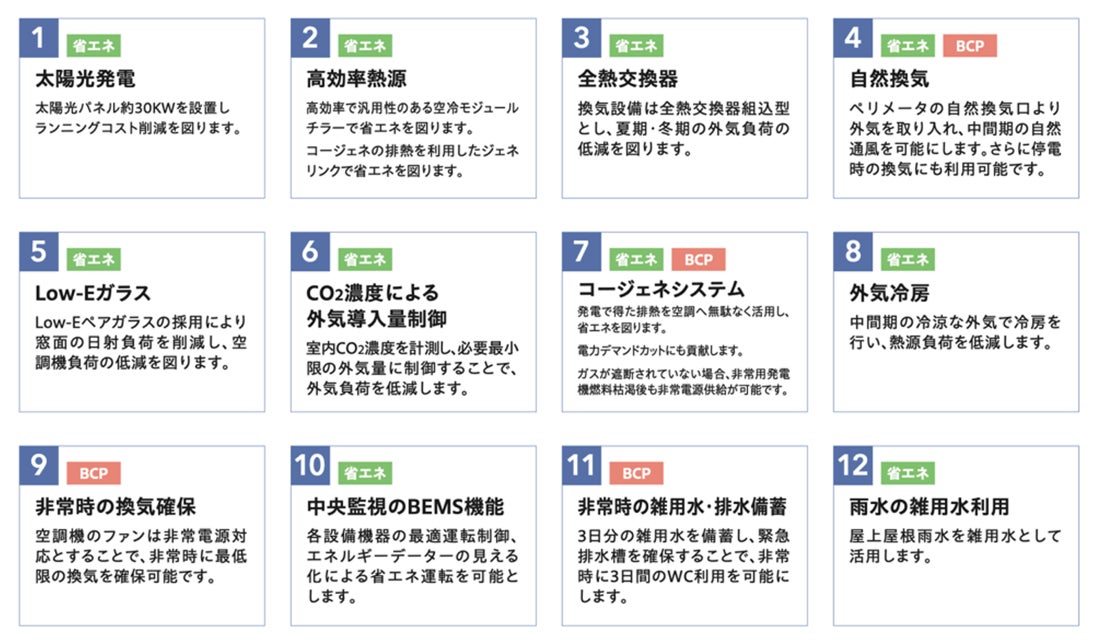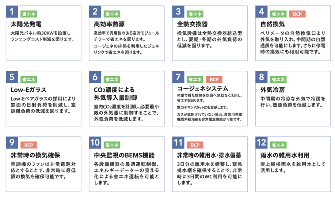 先進的な脱炭素・環境性能・グリーン電力などへの取り組みと万全のBCP計画(*)