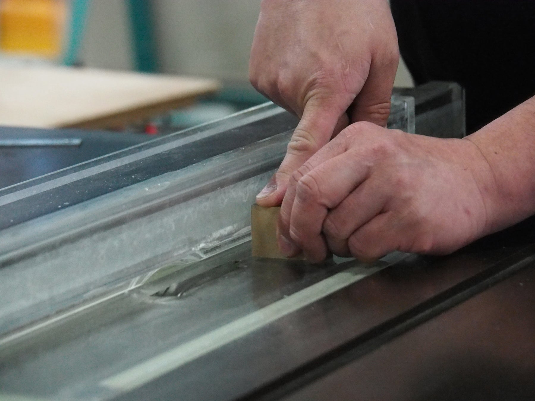 しかし、その評価は必ずしも可視化されず、一般加工の中に埋もれてしまうこともありました。そこで私たちは、これまでの経験と実績を改めて見つめ直し、美しさで選ばれる仕事を明確化するための基準を設け、ブランドとして独立させることを決意しました。それが「透匠」です。職人の目線、判断、そして何よりも仕事への姿勢に、光を当てること。それこそが、透匠が目指すものです。