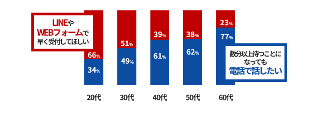 トラブル発生時の受付では、40代以上は電話ニーズが強い一方、20~30代はデジタルチャネルを望むという、世代間の二極化も明確になりました。