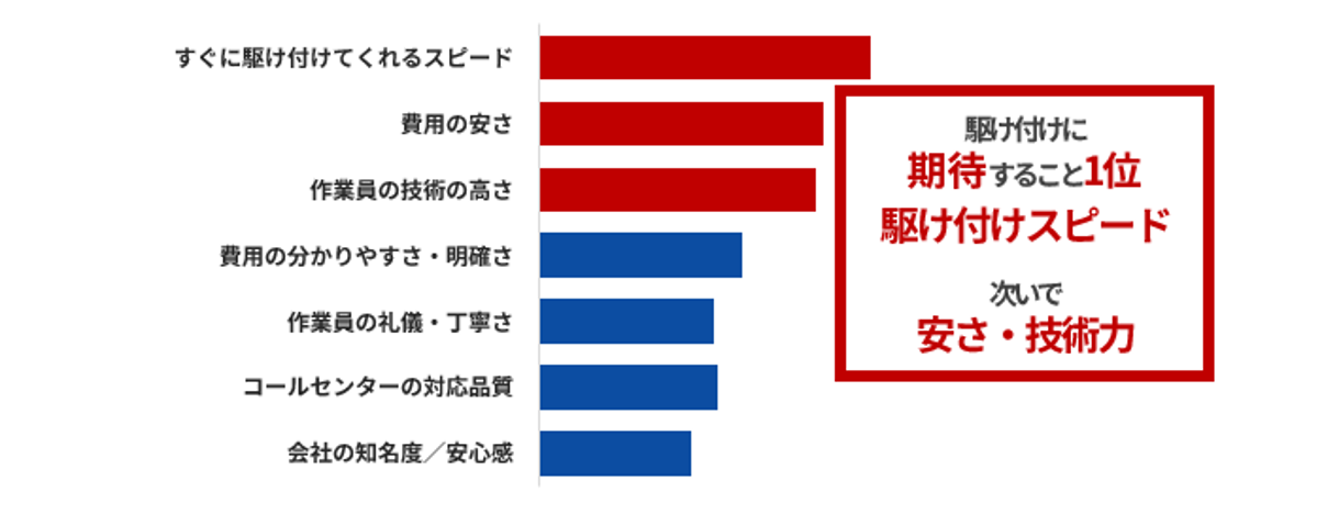 駆け付けサービスに期待することは「駆け付けスピード」が圧倒的トップ。