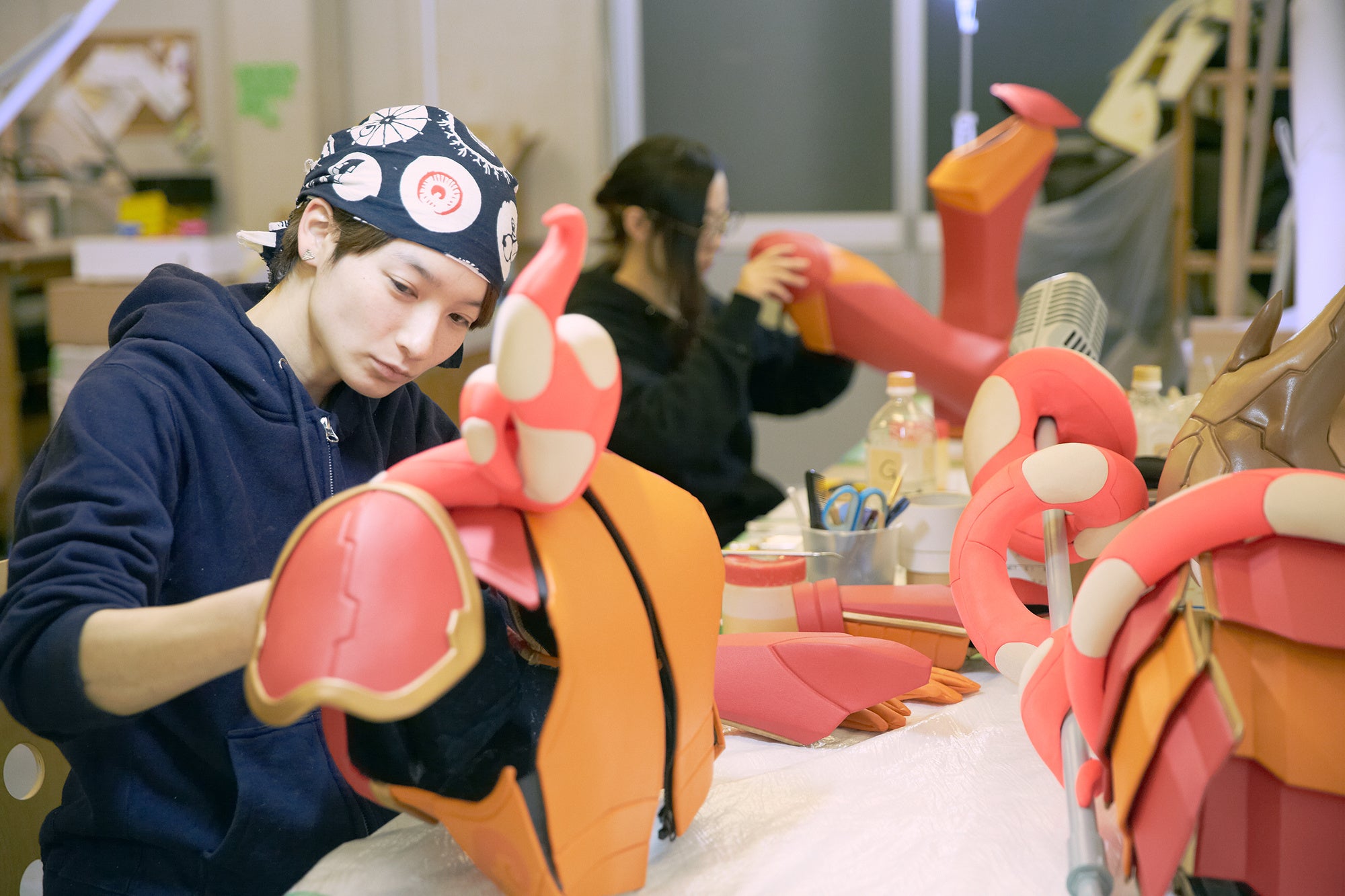 AIデザインを提示するだけで、着ぐるみとして成立するデザインへのリライト、構造設計、造形、仕上げまでを一括で請け負う。