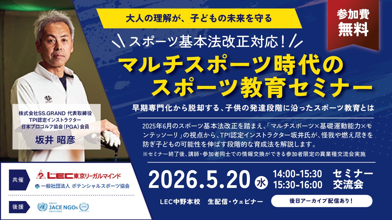 ➡大人の理解が、子どもの未来を守る スポーツ基本法改正対応 マルチスポーツ時代のスポーツ教育セミナー~早期専門化から脱却する、子供の発達段階に沿ったスポーツ教育とは~