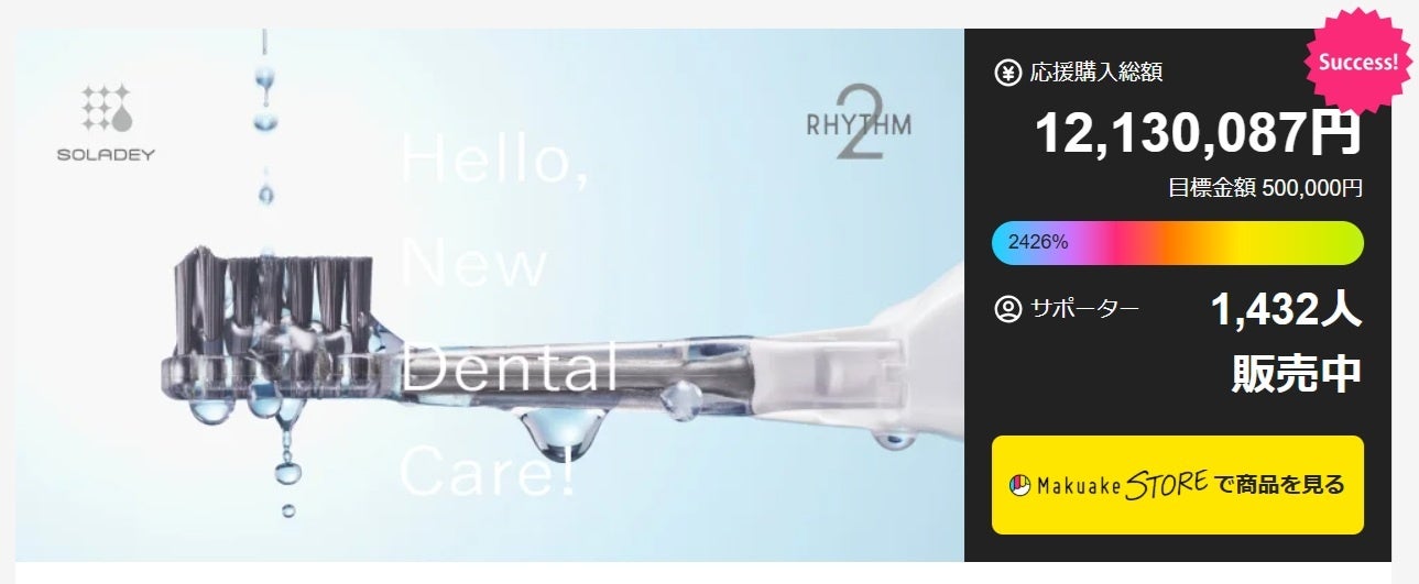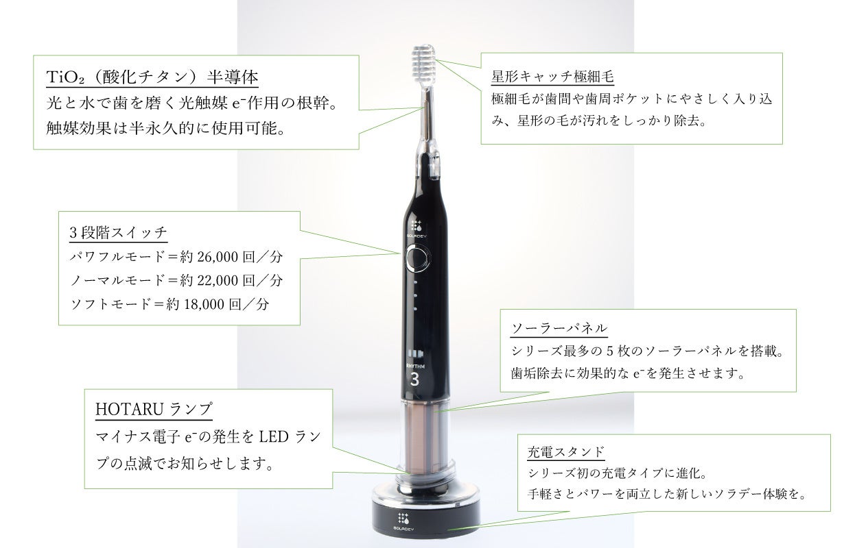 【新登場】光と水で歯垢を化学的に除去!シリーズ累計1,640万本突破の「ソラデー®」から、最新の充電式音波振動モデル「ソラデーリズム3」がMakuakeで先行発売開始