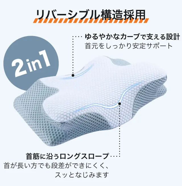 英国意匠登録済・4点サポート構造×リバーシブル高さ設計で多様な寝姿勢に対応