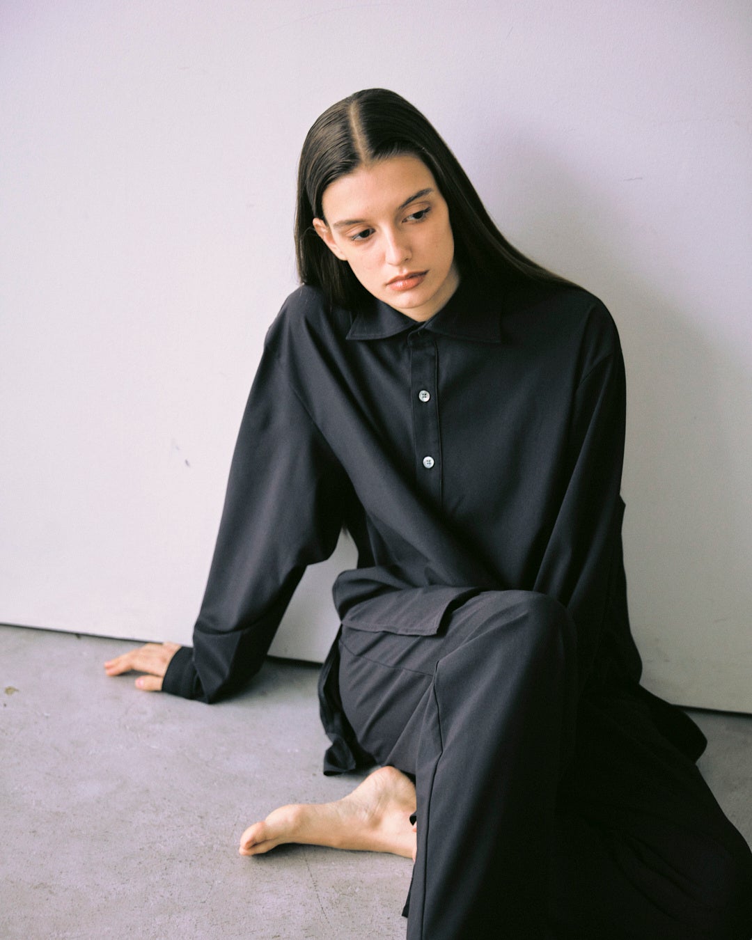 デビューコレクションでは、ノーカラージャケットシャツ(4万3000円)、スリーピングシャツ(3万2000円)、イージーパンツ(3万3000円)の全3型を展開する。身体の動きに自然に寄り添う柔らかな落ち感と、日常のさまざまなシーンに馴染む質感が特徴で、カジュアルにもドレッシーにも振れすぎない、静かな日常着として仕上げた。