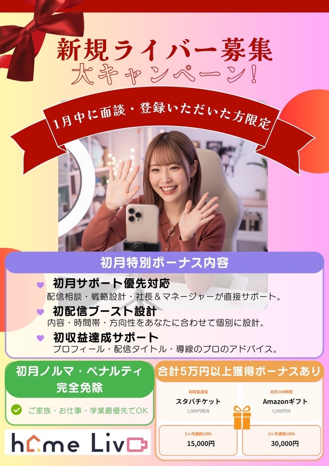 「homeLive 設立記念 新規ライバー募集大キャンペーン」を実施いたします。