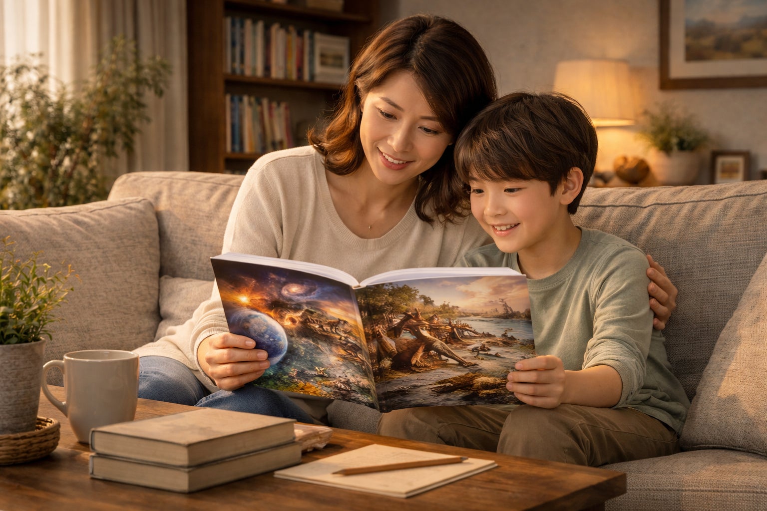 小さな子どもは絵から感じ取り、小学生は文章を読みながら理解を深め、大人は全体の流れや意味を考えながら読み進めることができるよう、複数の入り口を同時に持つ設計にしました。親子で同じページを見ながら、「なぜこうなったのか」と会話が生まれる本を目指しています。