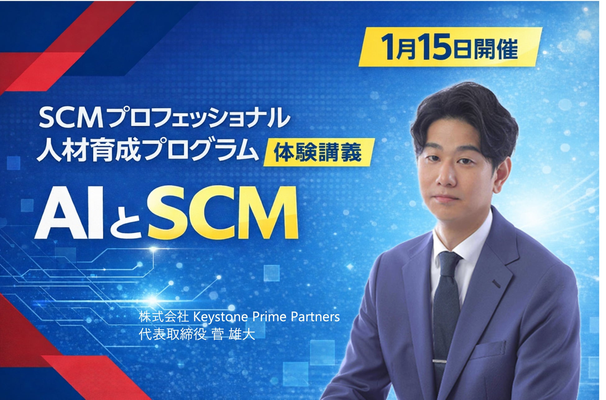 Keystone Prime Partners株式会社(本社:東京都渋谷区、代表取締役:菅雄大)は、2026年1月15日に開催される流通経済大学主催の体験講義「AIとSCM」において、代表取締役・菅雄大が講師として登壇予定であることをお知らせします。
