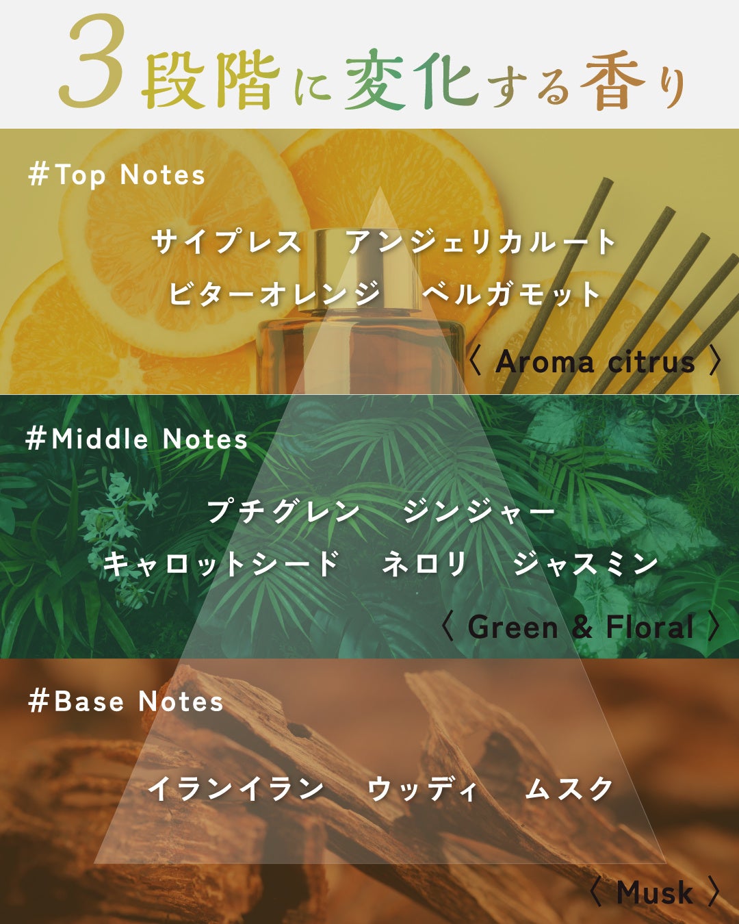 バスルームに広がる、まるで香水のような残香性の高い、高級感のある上質な香りで癒しやリラックスを感じていただければと思います。