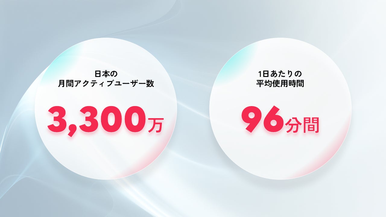 さらに、国内のTikTok月間アクティブユーザーは3,300万人以上、1日あたり平均利用時間は96分というデータもあり、日常的に視聴される場で購買までつなげられる点が特徴です。