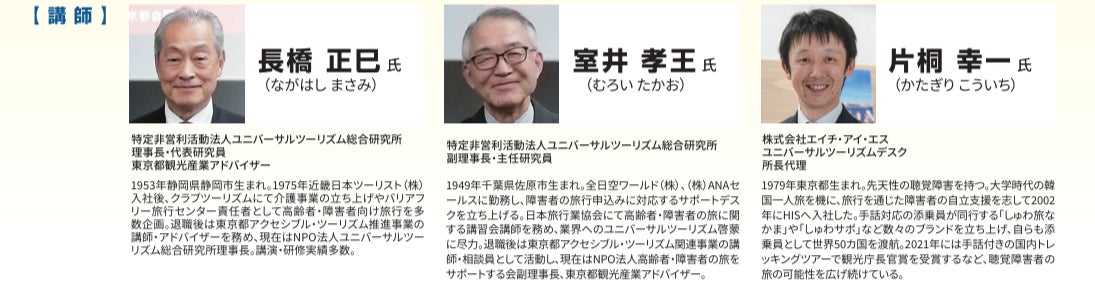 旅行商品の造成担当者や旅行手配を行うスタッフを対象に、障害特性を理解し、安全で無理のない旅程作成のノウハウを学びます。