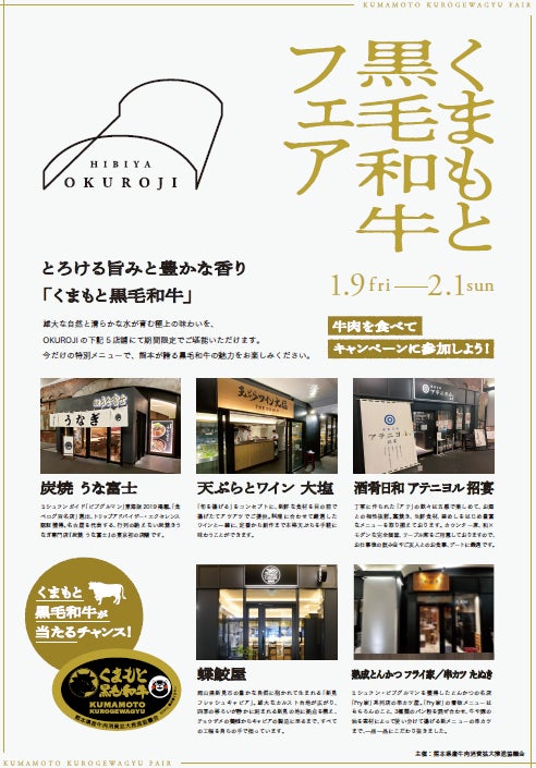 日比谷OKUROJIで1/9–2/1まで「くまもと黒毛和牛フェア」開催。協力5店舗で限定メニューを提供