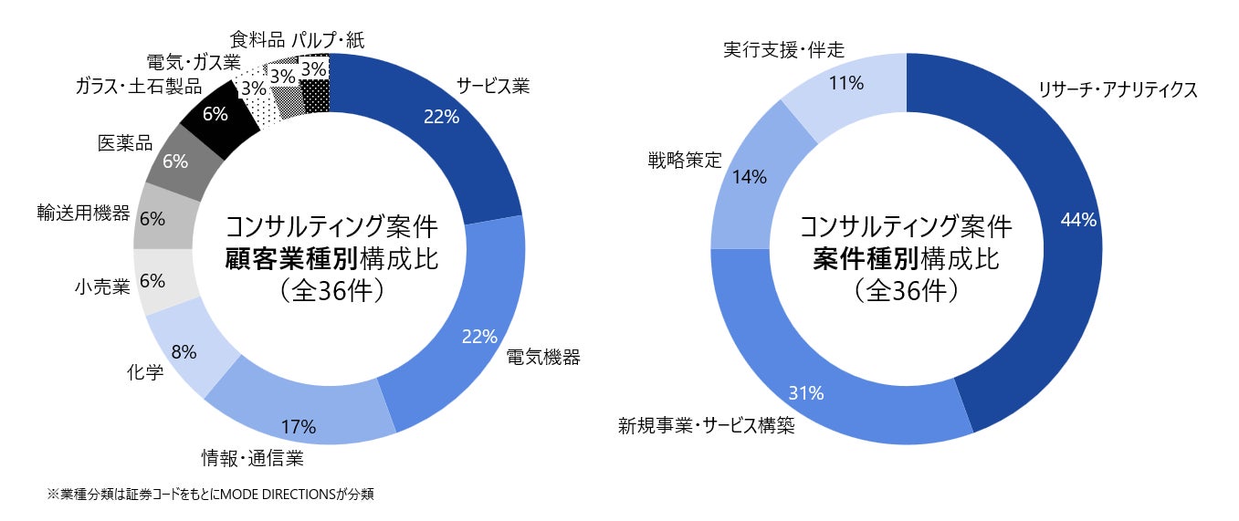 コンサルティングサービスにおいては、主にサービス業や製造業(電気機器)、情報・通信業の企業様を中心にご導入いただいております。
