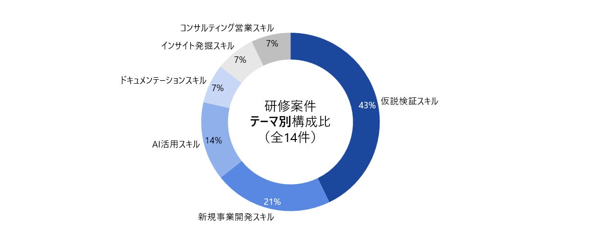 研修サービスについては、インタビュースキル、新規事業開発スキル、AIリサーチスキルの習得などを目的としたご依頼を多数いただいております。