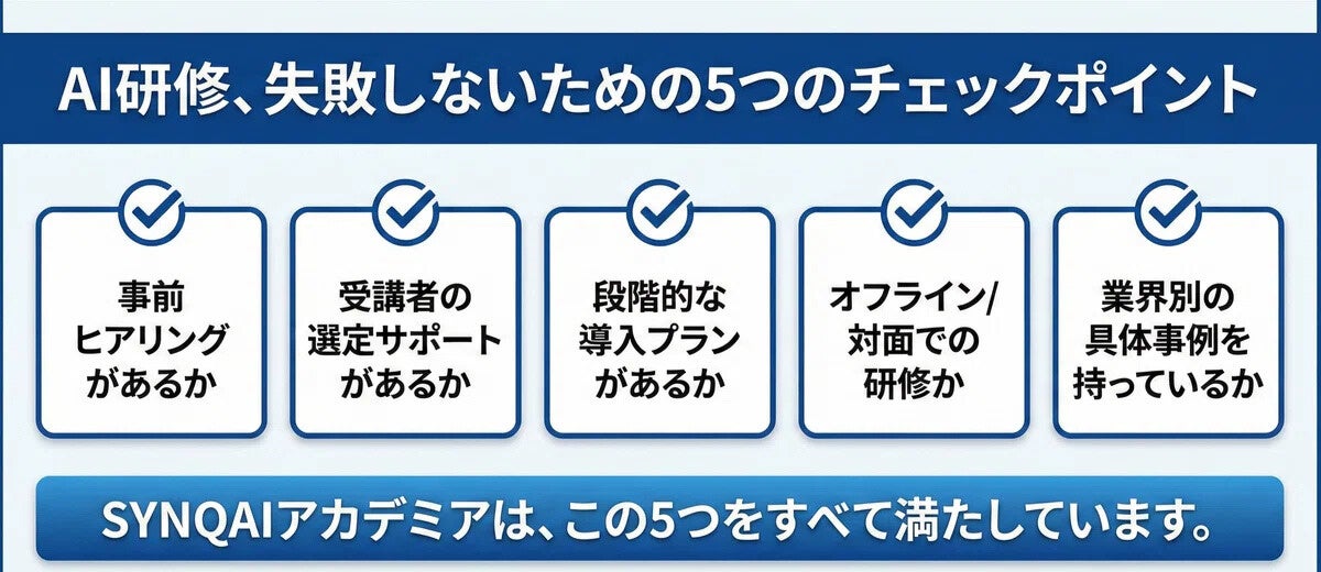 ■ 失敗しないAI研修を選ぶための5つのチェックポイント