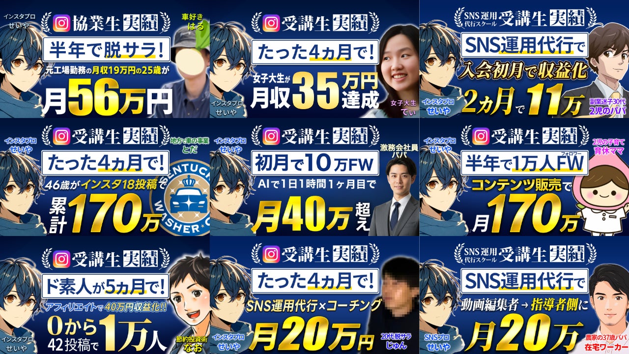 実際に過去にSNSクリエイターコースデ指導してきた生徒からは下記のような実績も多数報告を受けています!