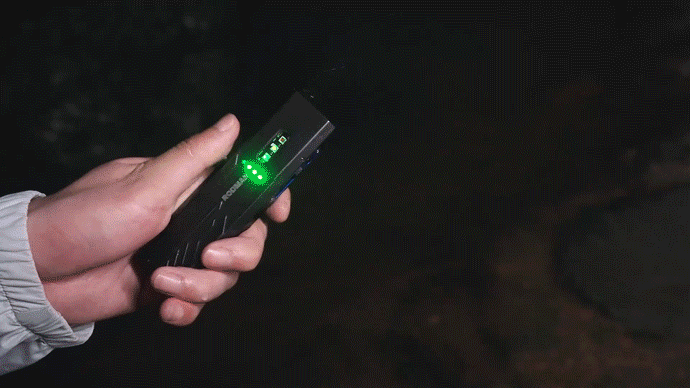 赤色光によるSOSフラッシュ信号は、暗闇を貫くように遠くまで届き、視認性に優れています。