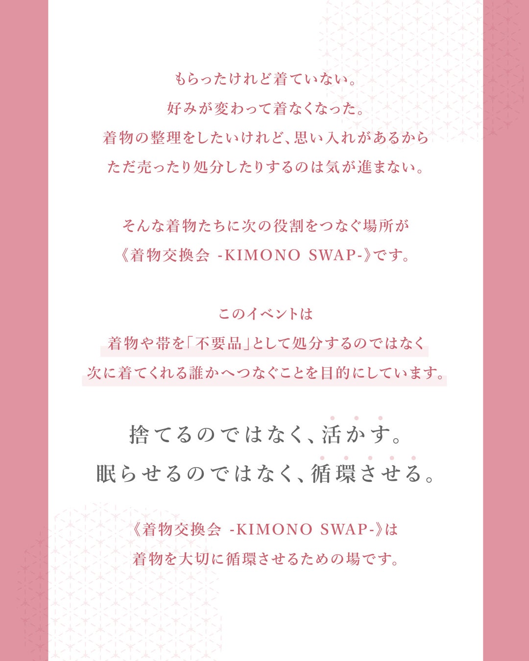 不要な着物を捨てるのではなく「活かす」。眠らせるのではなく「循環させる」。