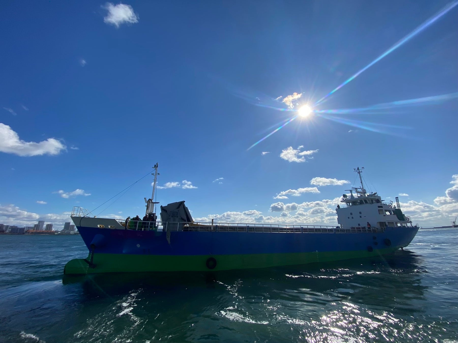 災害時に港湾施設が被災し船舶が着岸できない状況を想定し、停泊中の船舶に積載した支援物資をドローンで陸上へ輸送し、神戸港内の指定された集積地点へ集約する。これにより、海上輸送が滞った場合においても、船舶とドローンを連携させた新たな物資集積手法の有効性や、運用上の課題、安全性を検証する。