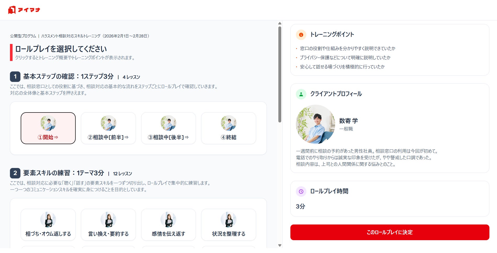 1回3分から実施できる短時間シナリオとすることで、商談や評価面談の直前、外出先での待ち時間など、業務の合間にPCやスマートフォンからすぐに利用できます。