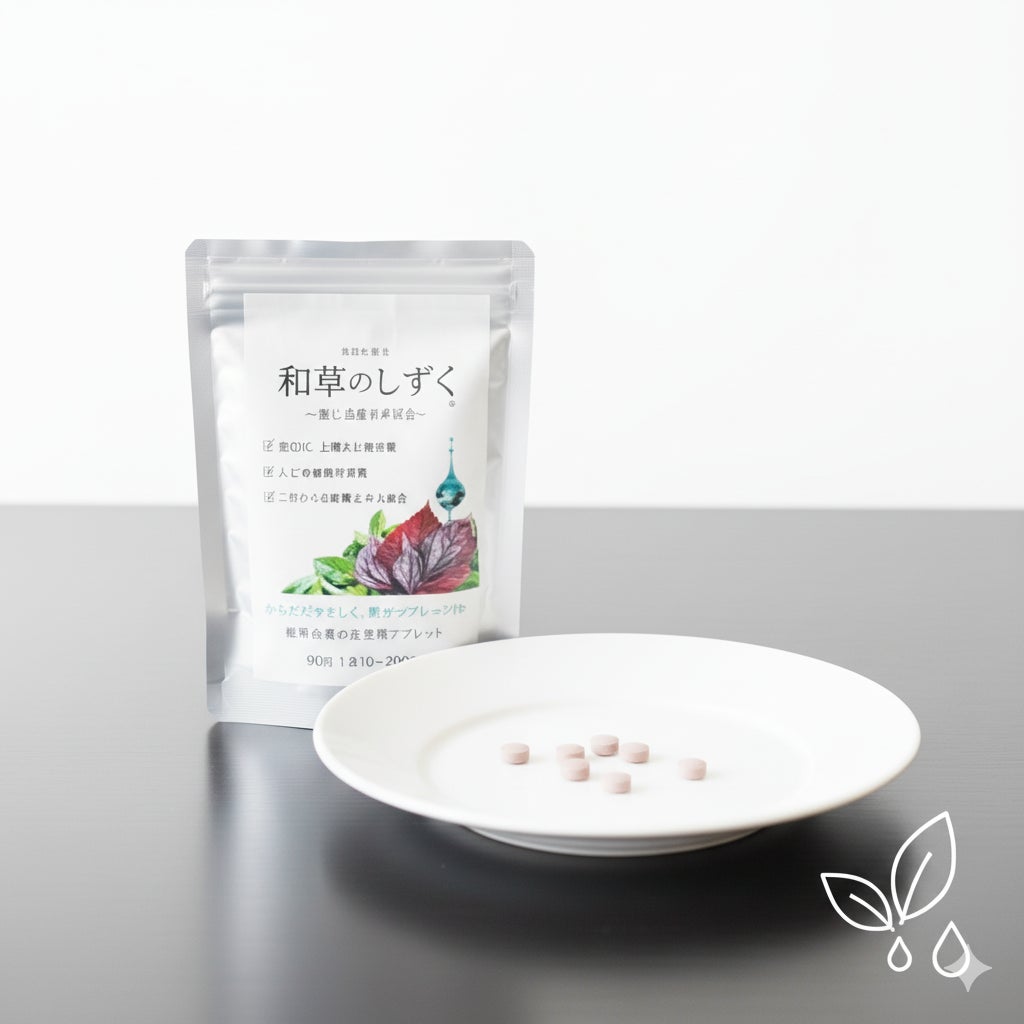 この「局所的な乾き」と「全身的な流出」という2つの課題に、たった一粒でアプローチするために開発されたのが、『和草(わそう)のしずく』です。 単なる嗜好品ではなく、大人の体を守るための「機能性」を持った食品として設計しました。