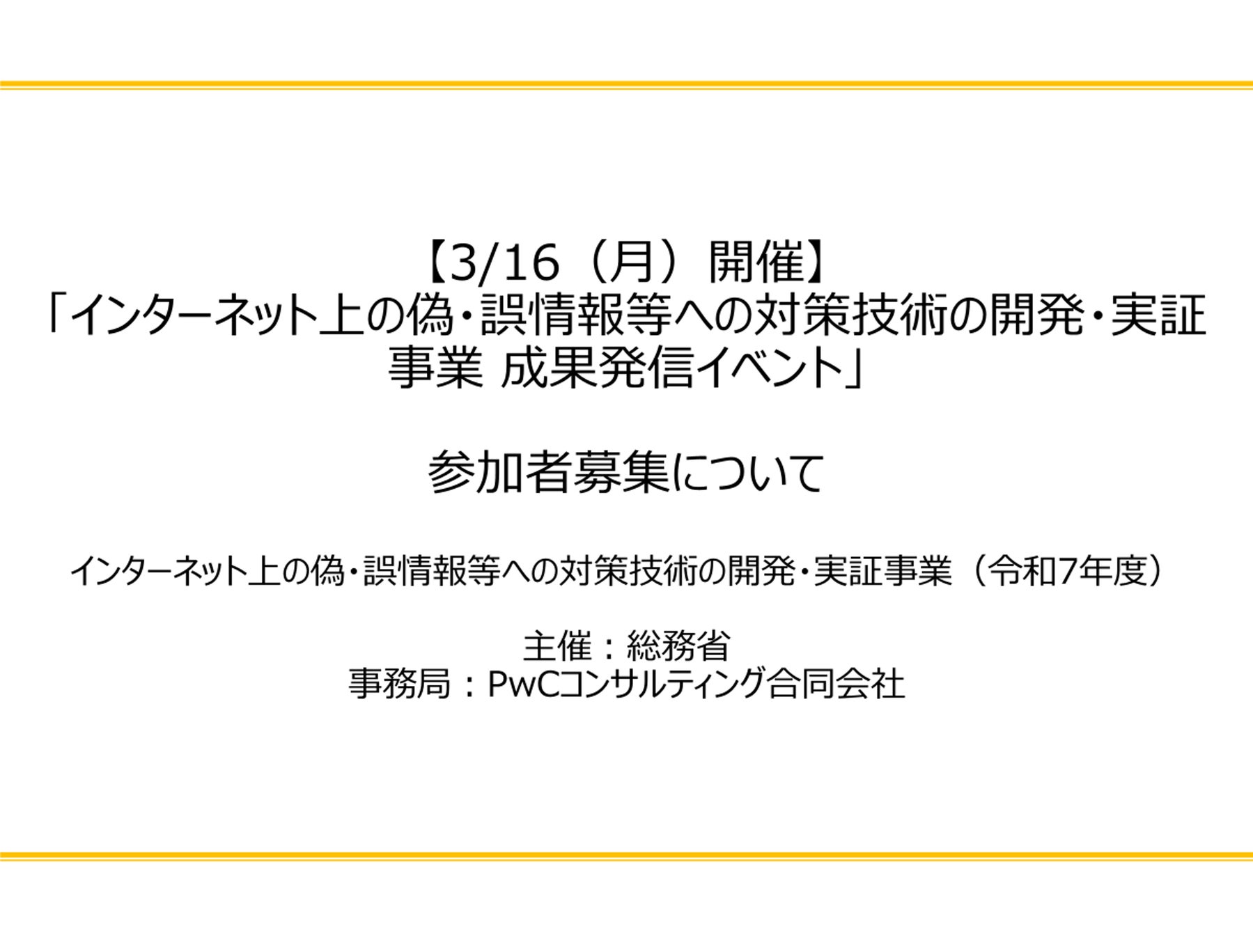 【3/16(月)開催】総務省主催「インターネット上の偽・誤情報等への対策技術の開発・実証事業 成果発信イベント」参加者募集について