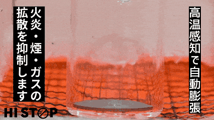 内部の難燃発泡素材が急速に膨張し、発熱部を覆うことで燃焼の進行を抑制する構造を採用しています。