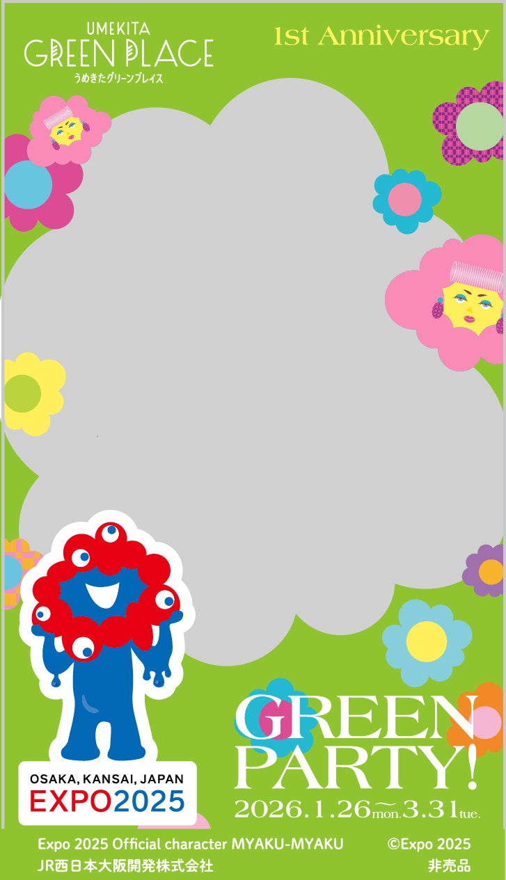 うめきたグリーンプレイス1周年を記念して大阪・関西万博公式キャラクター「ミャクミャク」のイラストを使用したオリジナルARフィルターを1周年記念特設サイトとTikTok上で公開。