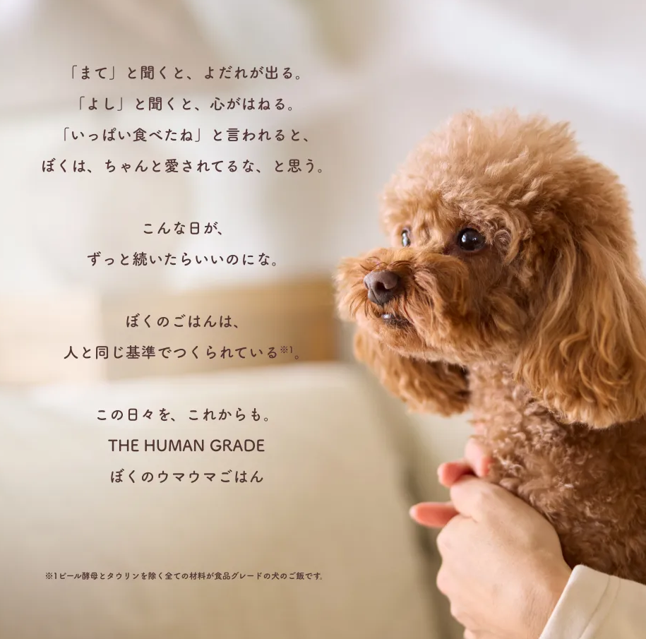 犬の食事をドッグフードと呼ばない選択。家族と同じ基準で考えた新ブランド「 THE HUMAN GRADE(ザ・ヒューマングレード)ぼくのウマウマごはん。 」を新発売。