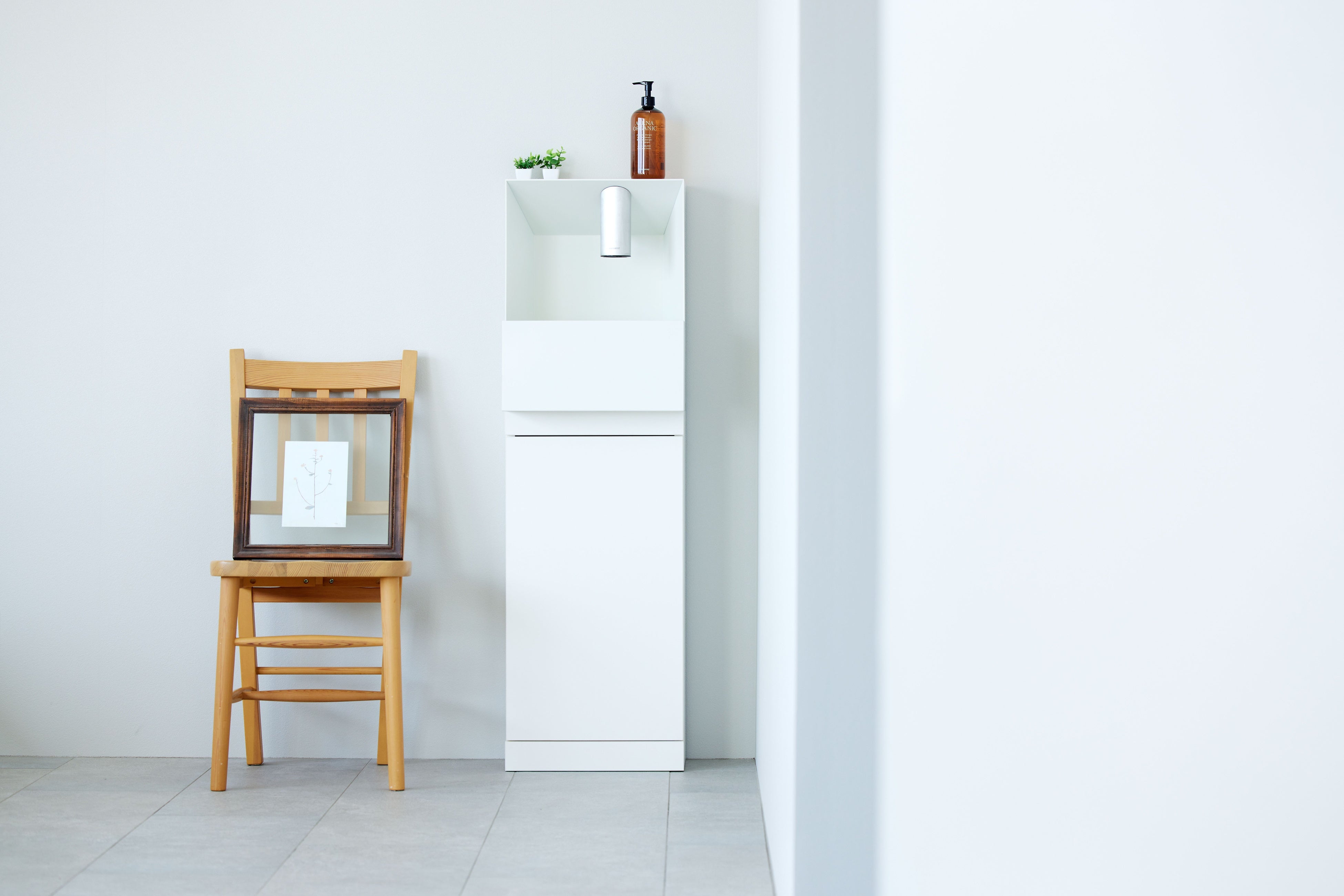 一見して手洗器とは分からない家具のような造形が特徴です 。余計な装飾を削ぎ落としたデザインは、空間に圧迫感(ノイズ)を与えません 。