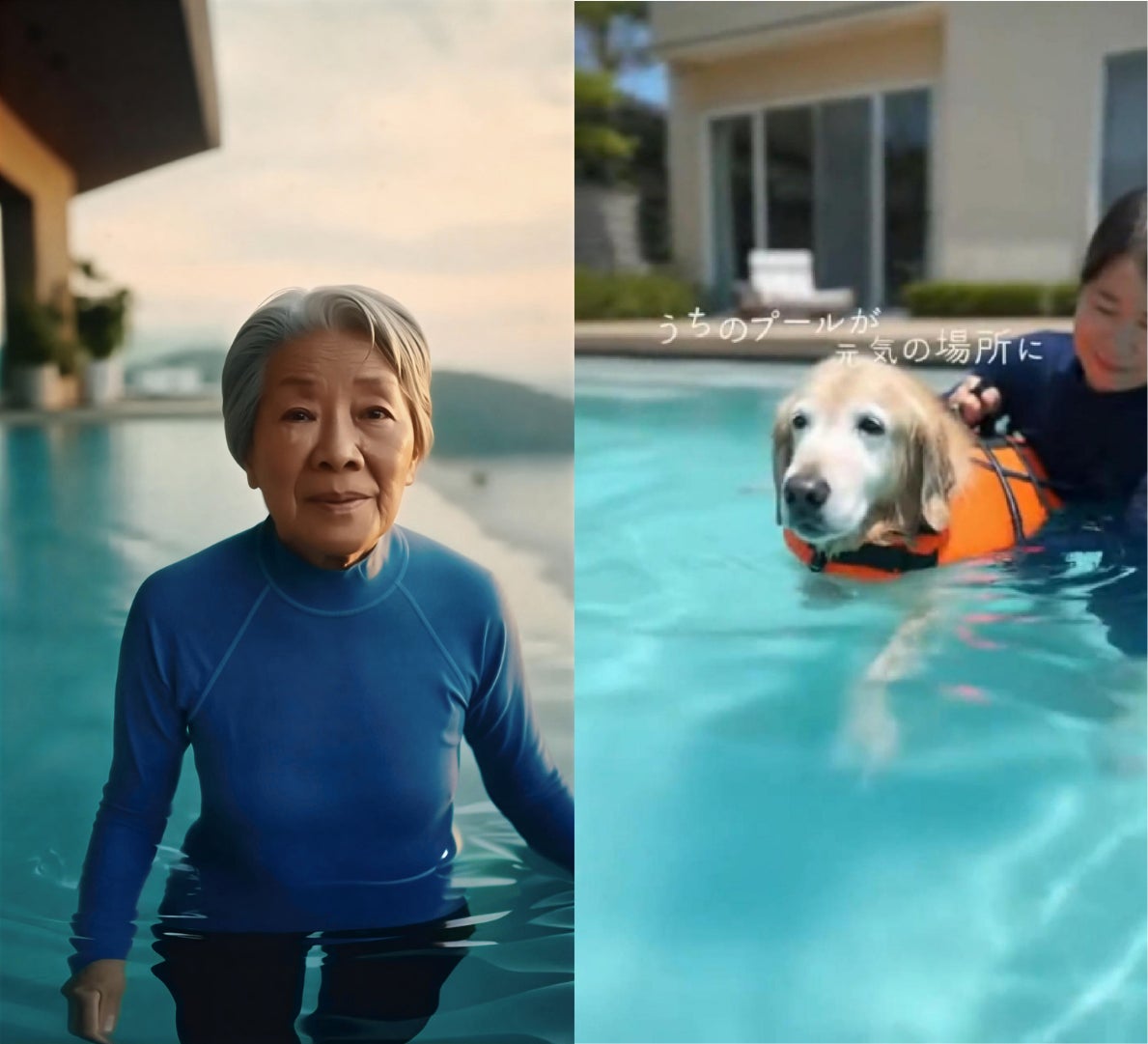 従来の「贅沢品」としてのプールの概念を覆し、高齢者や老犬の機能回復を支える「水中歩行リハビリ」の場を提案します。