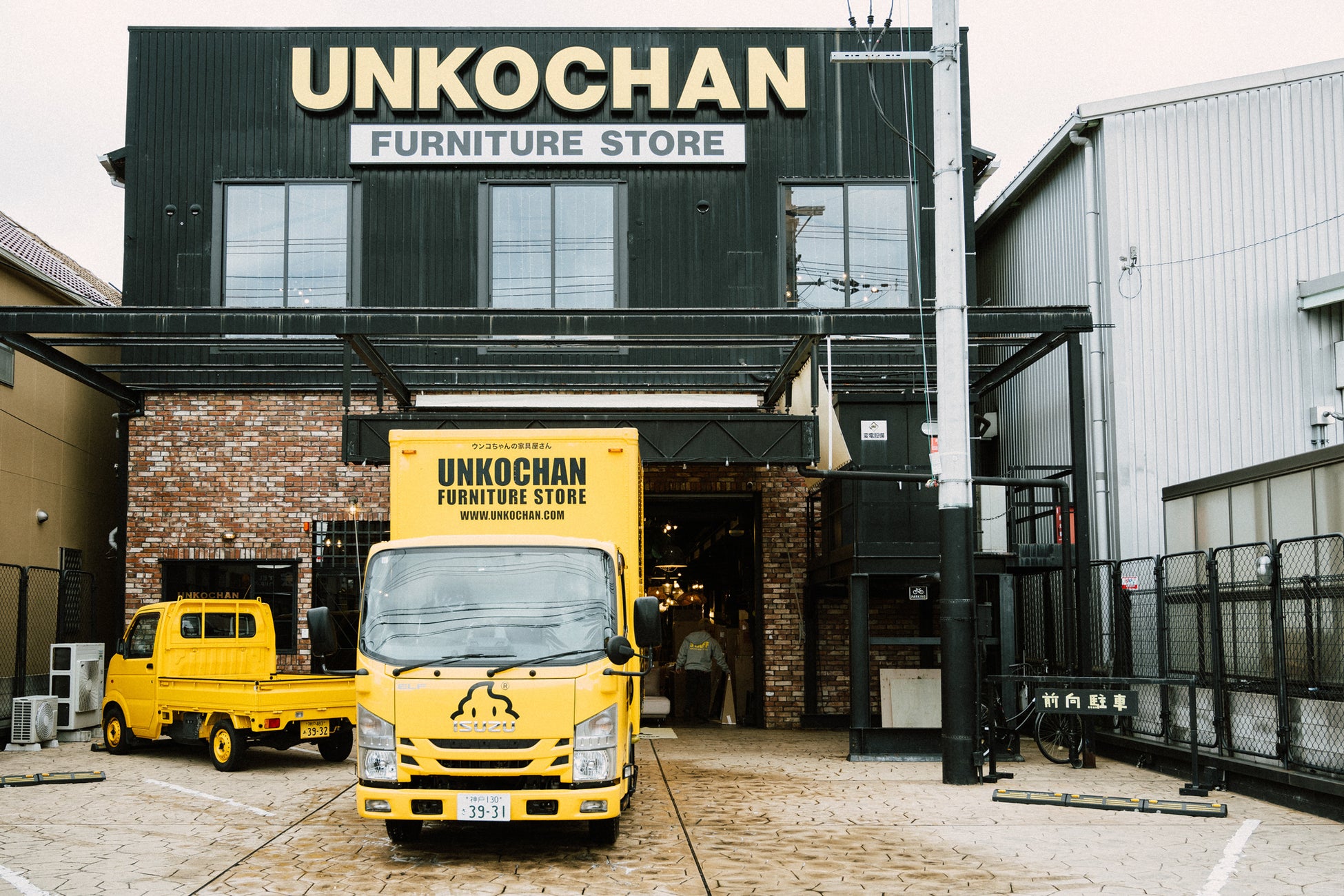 大阪の家具業界で使われていた「B級品=ウンコちゃん」という隠語に由来。創業当初はその名の通り“傷もん・B級品”の家具を手頃なディスカウント価格で販売。“傷もん”とは思えない上質な家具をリーズナブルに購入できることで、多くのお客様に選ばれてきました。