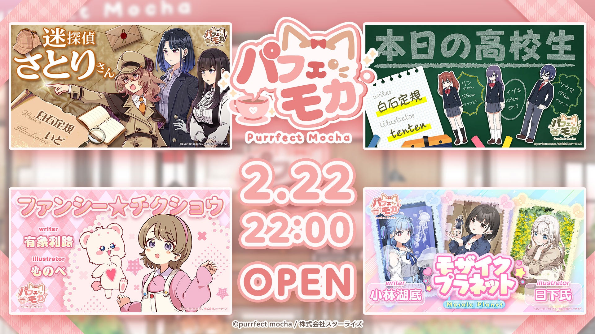 株式会社スターライズは、YouTubeを中心に展開するオリジナルアニメコントIP『Purrfect Mocha(パフェモカ)』について、2026年2月22日(日)22:00よりYouTubeにて正式オープンすることをお知らせいたします。