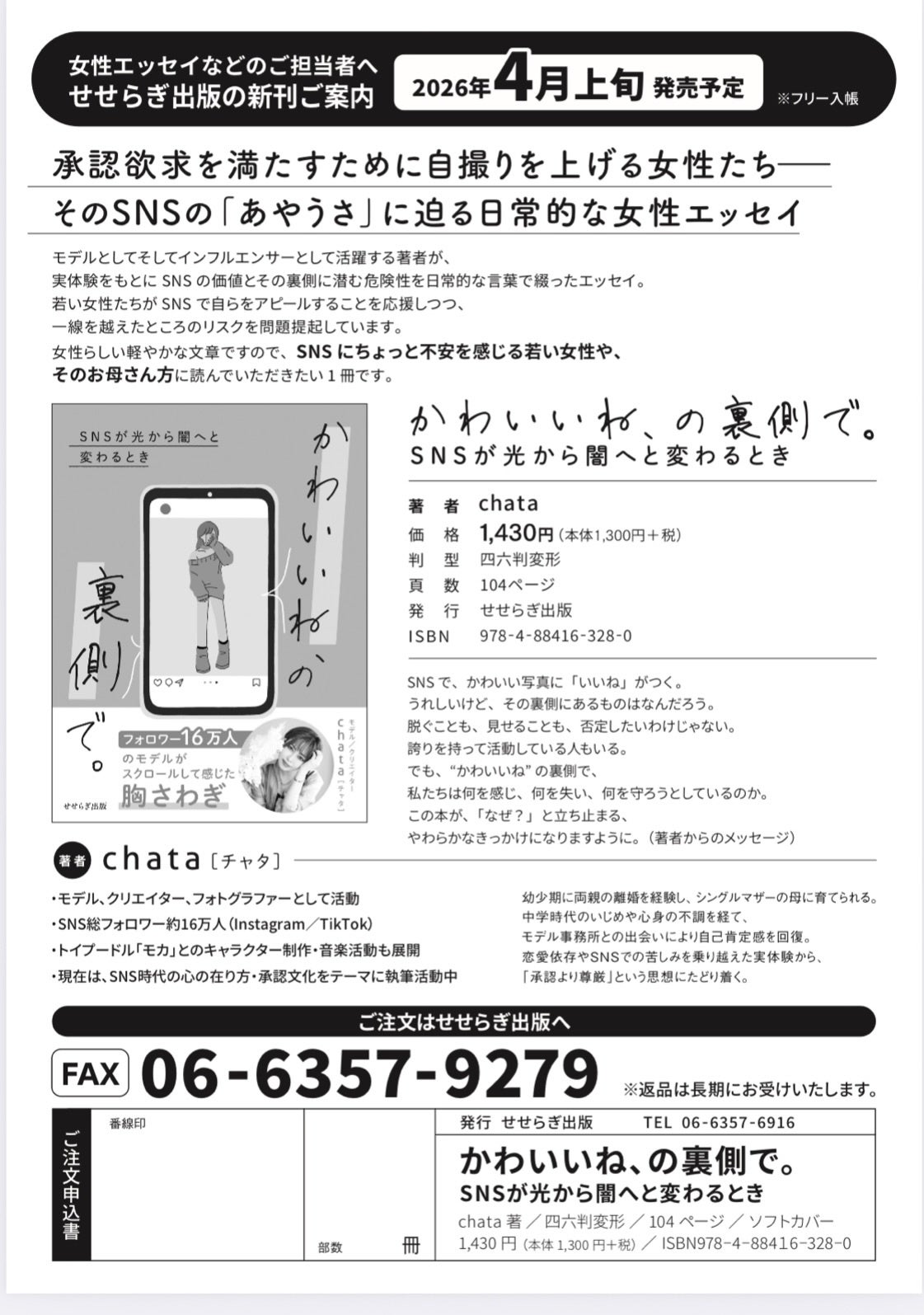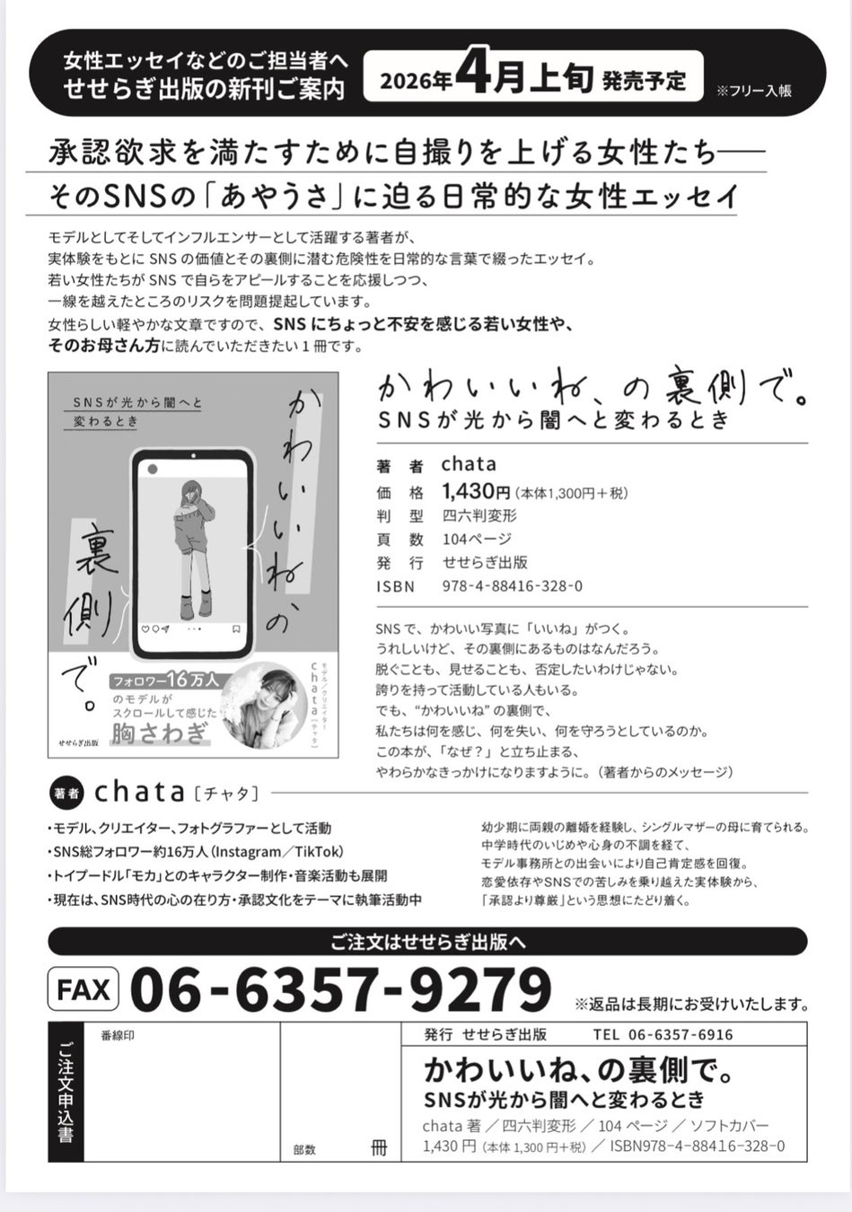 2026年4月10日、株式会社せせらぎ出版より、書籍『かわいいね、の裏側で』が刊行された。