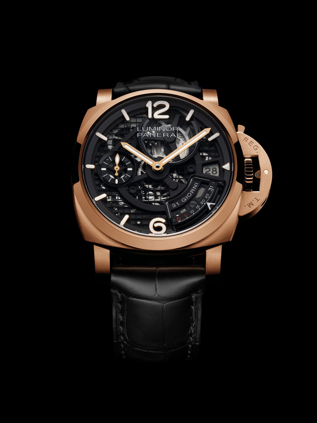 さらに、かつては必要に迫られて誕生した、パネライのロングパワーリザーブの追求も、表現の場となります。歴史的なキャリバーによって提供された初期のロングパワーリザーブから現代のものまで、この旅は驚くべき成果に結実します。それは31日間のパワーリザーブであり、パネライの機械的耐久性における新たな地平です。特許取得済みのトルクリミッター、自動停止機能と4つのバレルを備えた新しいP.2031/Sキャリバーが、最も安定した31日間のパワーリザーブを可能にします。