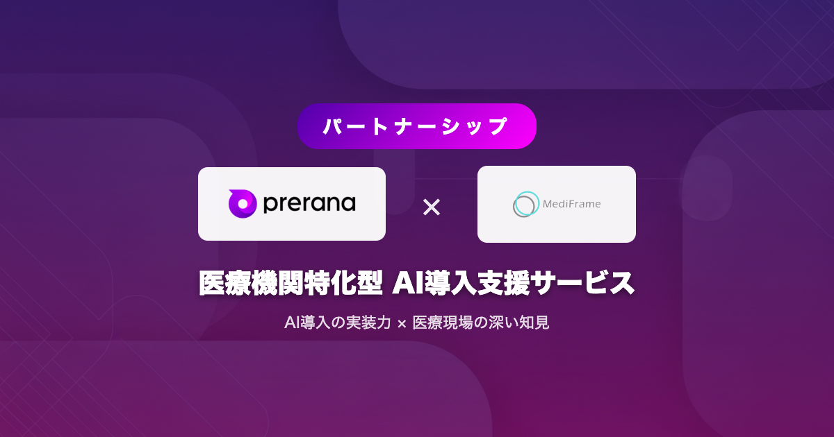 株式会社プレラナ(本社:大阪市北区、代表取締役:市川知樹、以下「プレラナ」)は、医療業界に精通したコンサルティング企業・MediFrame(メディフレーム)と協業し、医療機関特化型のAI導入支援サービスを2026年3月より共同で提供開始いたします。