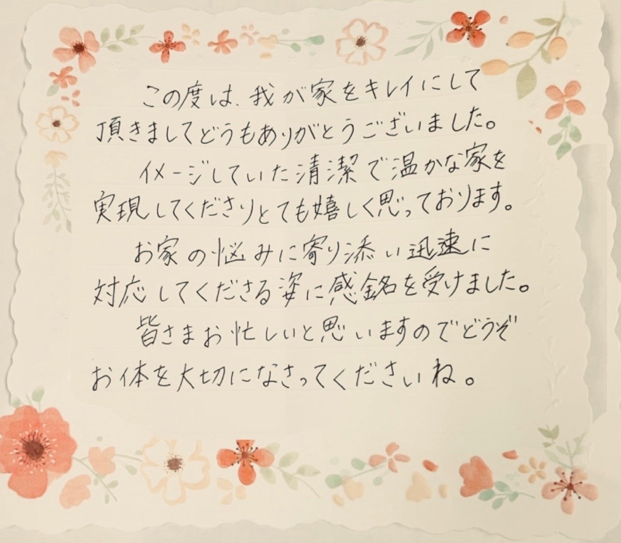 ⑤ご近隣挨拶のご案内(日程決定時) ご近隣トラブルを防ぐため、当社の爽やかスタッフが近隣の方々へご挨拶にお伺いする日程を事前にお知らせします。