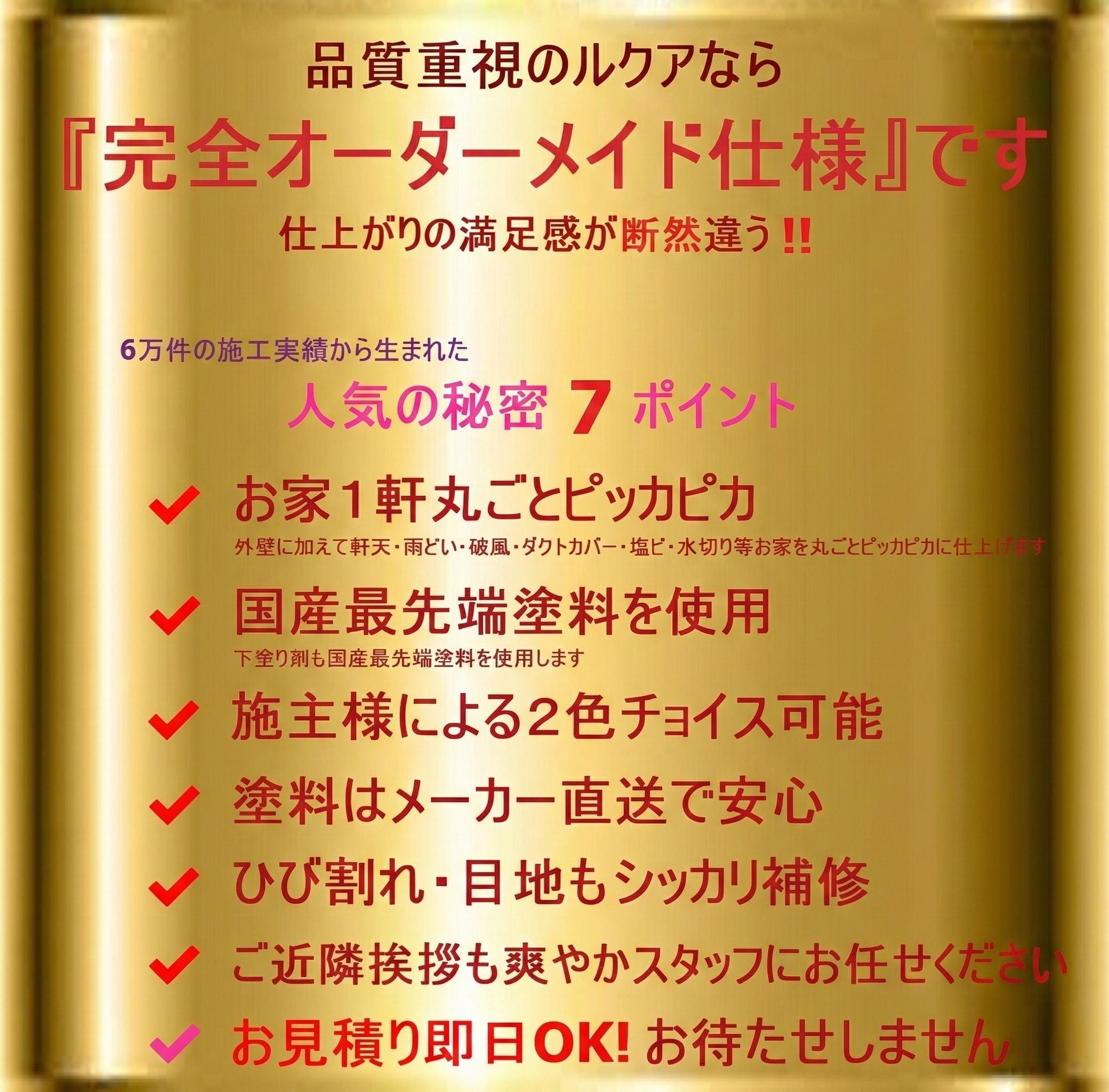 株式会社ルクアは、「感動企業」を理念に掲げ、創業以来、神奈川・東京・埼玉・千葉エリアを中心に累計6万件を超える施工実績を誇る外壁塗装専門のリフォーム会社です。