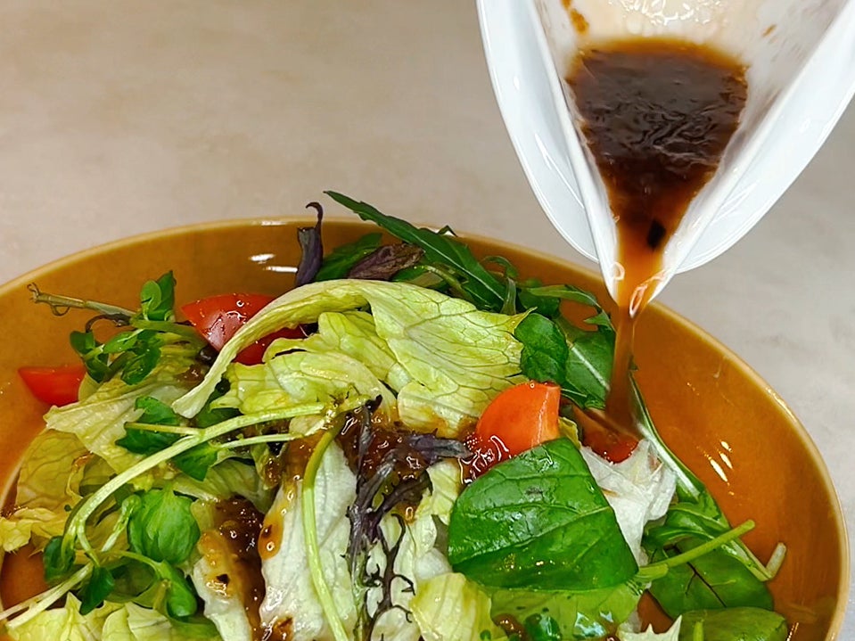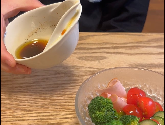 うつわの底面を平らにすることで重心が下がり、安定感があります。底が机にしっかり密着するため、ドレッシングを混ぜるときも、ぐらつかず安定して使えます。また、深さがあるため、器の中で調味料を混ぜるスペースが十分に確保されています。