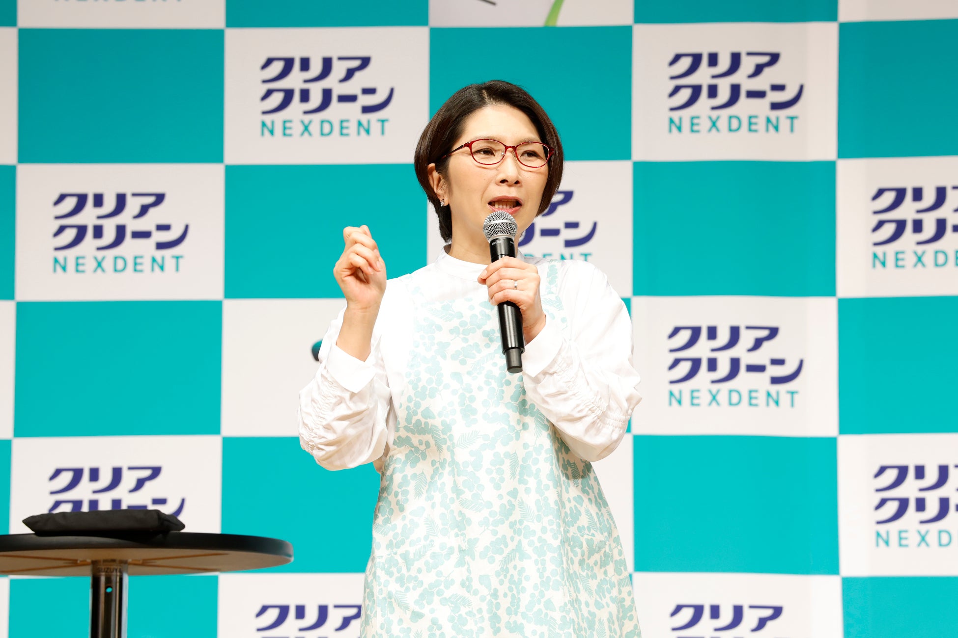 今回のクリアクリーンNEXDENTリニューアルのメッセージである「バタバタなあなたに。ハミガキくらい、粒*でラクしてね!」にちなみ、名前に「バタ」がつく人として、くわばたりえさんとおばたのお兄さんが“バタバタコンビ” として慌ただしく登壇。くわばたさんは「まさかくわばたの“バタ”が仕事につながる日が来るなんて…」と共演した感想をコメントしました。