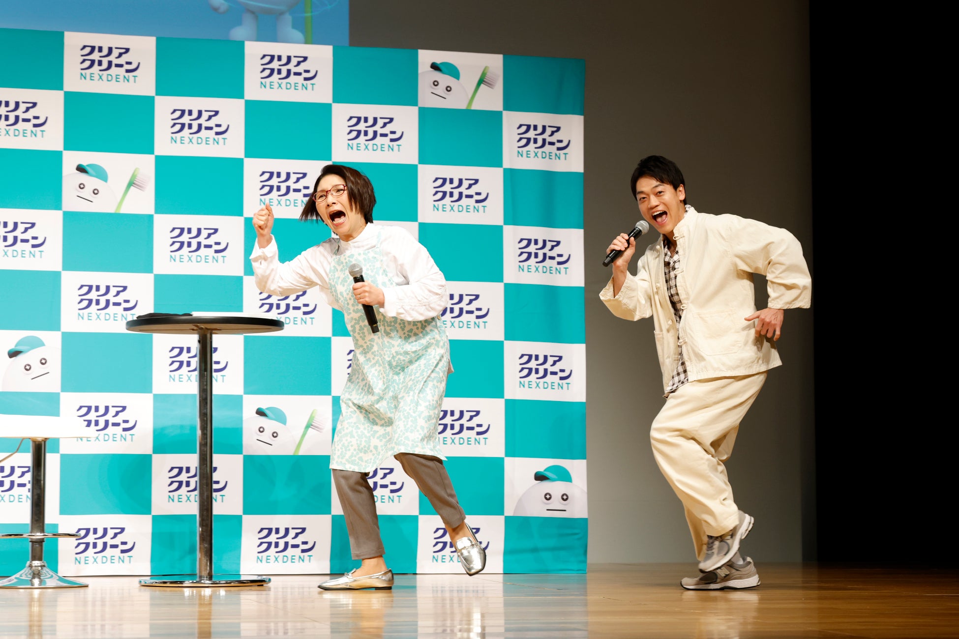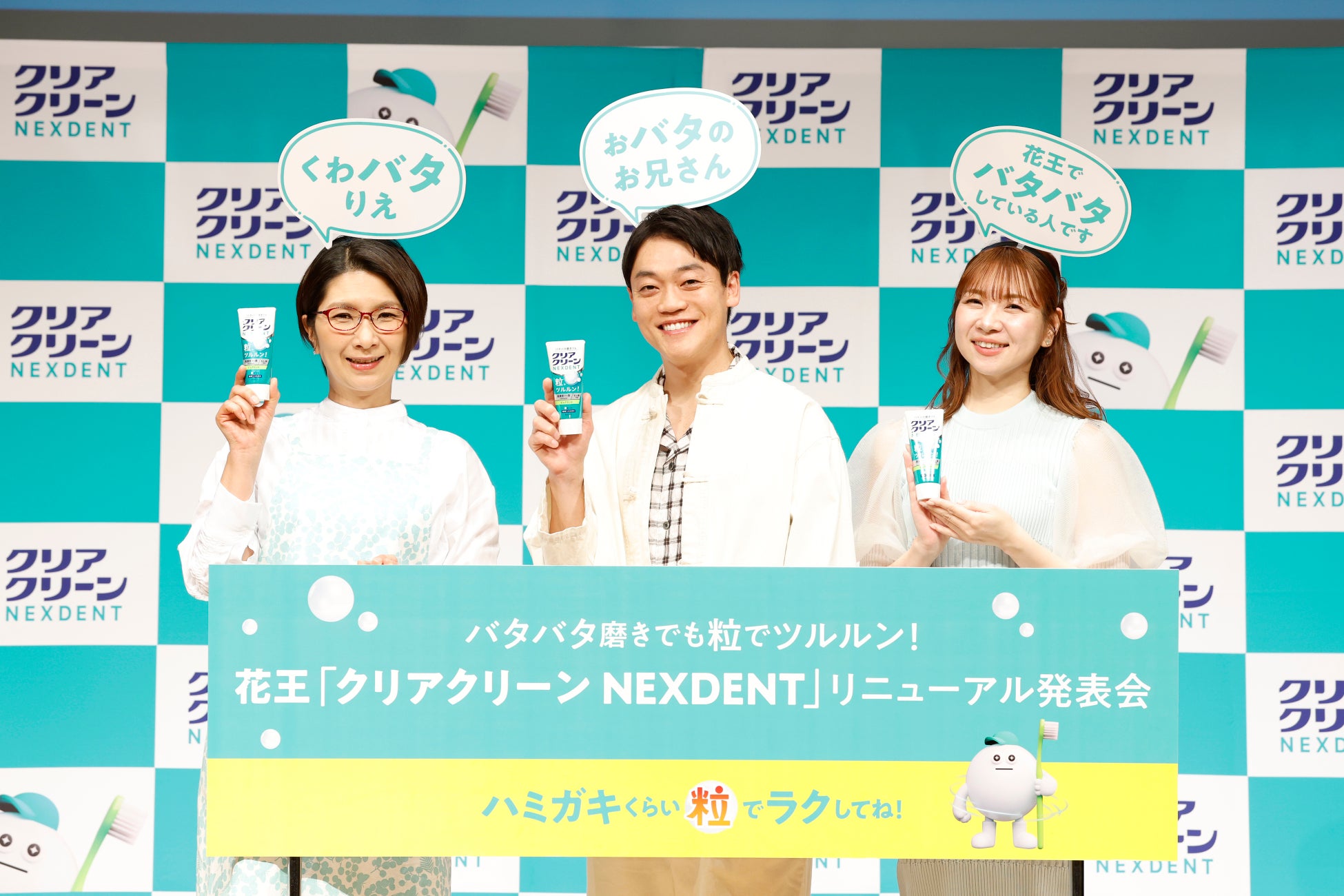 くわばたりえさん×おばたのお兄さん"バタバタ"コンビで登壇!バタバタ磨きでも粒*でツルルン!花王「クリアクリーンNEXDENT」リニューアル発表会開催