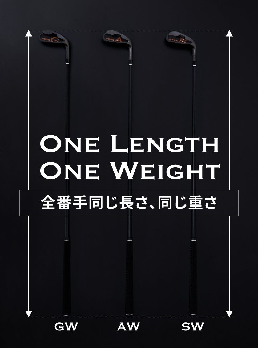 同じ長さ・重さのワンレングスとなることで、スイングの変数を減らしショットの再現性向上に導くのがNOOGの「ワンレングスウェッジ」です。