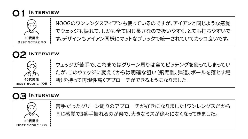 「ゴルフをアップデートする」をコンセプトに掲げるゴルフブランド「NOOG(ノーグ)」は、全番手が同じ長さ・同じ重さで設計された「ワンレングスウェッジセット」を新発売いたします。