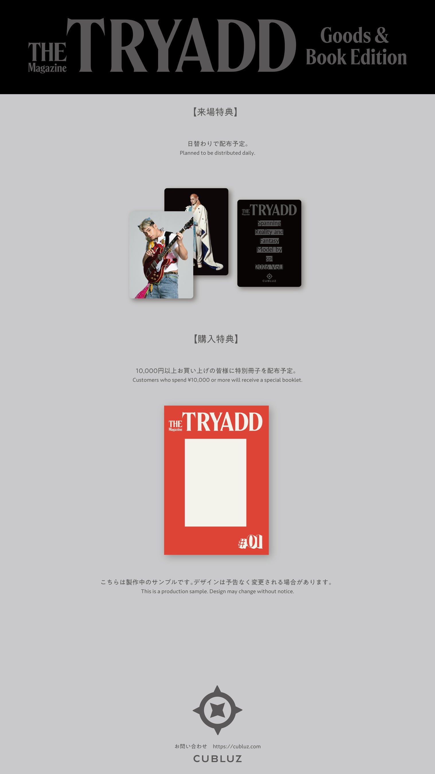 株式会社CUBLUZ(所在地:東京都渋谷区、代表取締役:須加真仁)は、俳優の新たな一面を世界観設計とアートディレクションによって可視化する写真集レーベル「The TRYADD Magazine」を創刊します。創刊号のモデルには俳優・spi(William.W.Spearman IV)さんにご協力いただきました。