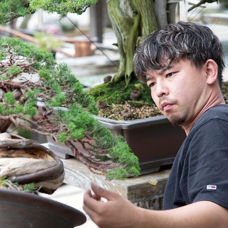 西日本最大級の盆栽園の次代を担い、伝統を継ぎながら、現代の暮らしに調和する盆栽を手掛けている。