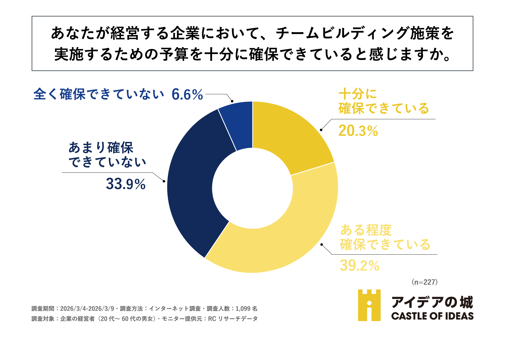 チームビルディング施策を実施している企業の経営者の約4割が、その予算を十分に確保できていないと感じている