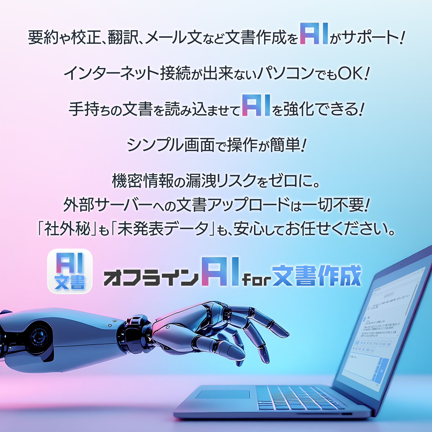 クラウド不要・完全オフライン動作機密文書を外部送信しないWindows向け生成AIソフト「オフラインAI for 文書作成」発売